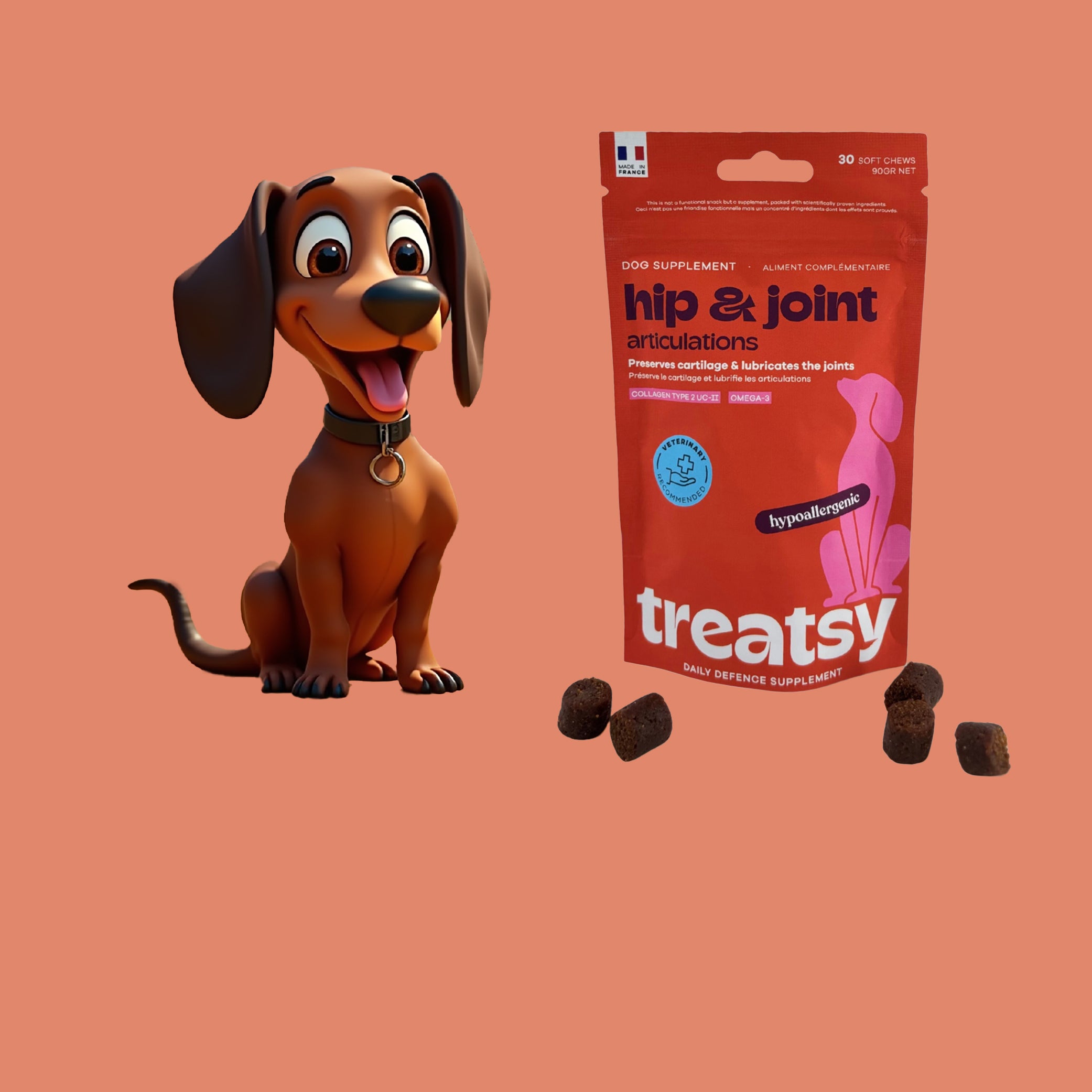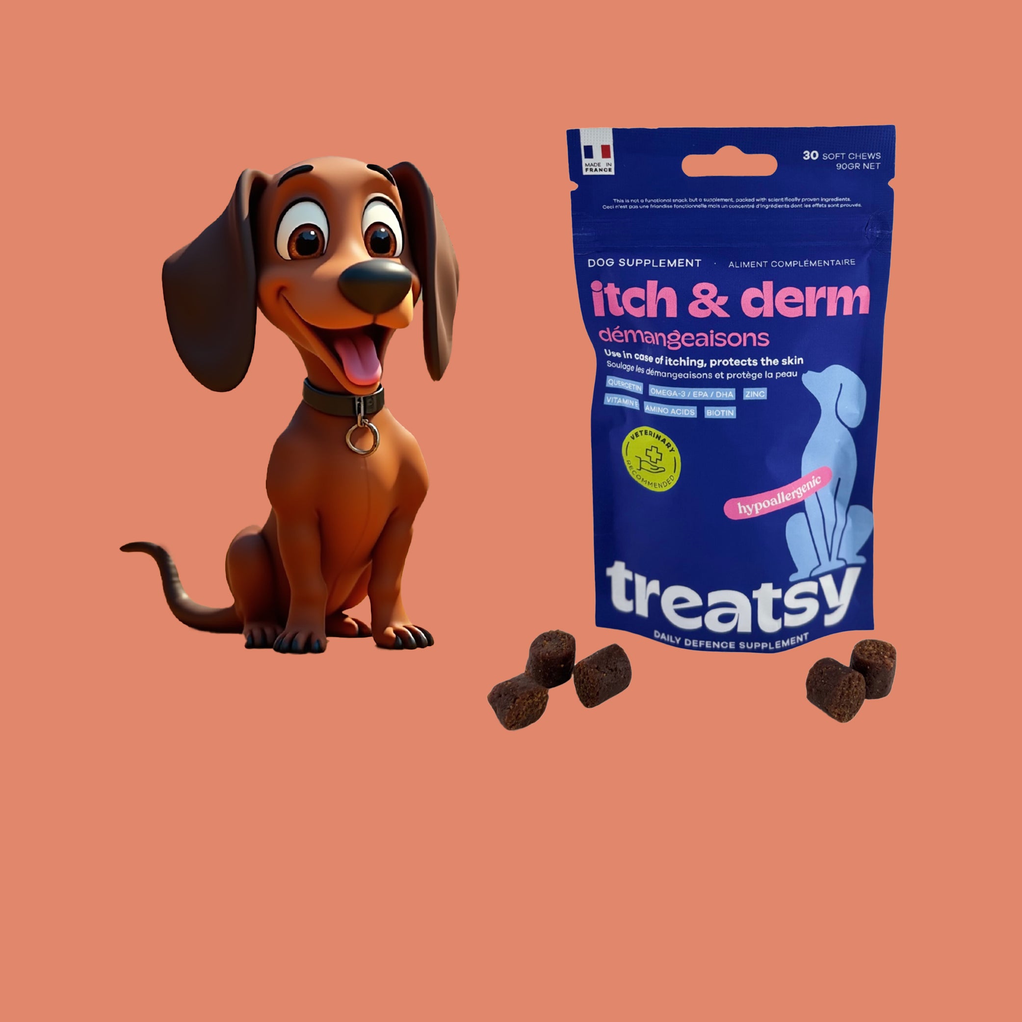Treatsy propose une gamme complète de compléments alimentaires pour chiens et chats sous forme de friandises appétentes. Recommandés par des vétérinaires, ces produits associent plaisir et efficacité pour soutenir la santé de vos compagnons à quatre pattes 🐶🐱. Adaptés aux besoins essentiels — mobilité, digestion, allergies, peau & pelage — Treatsy apporte des solutions naturelles et validées scientifiquement.