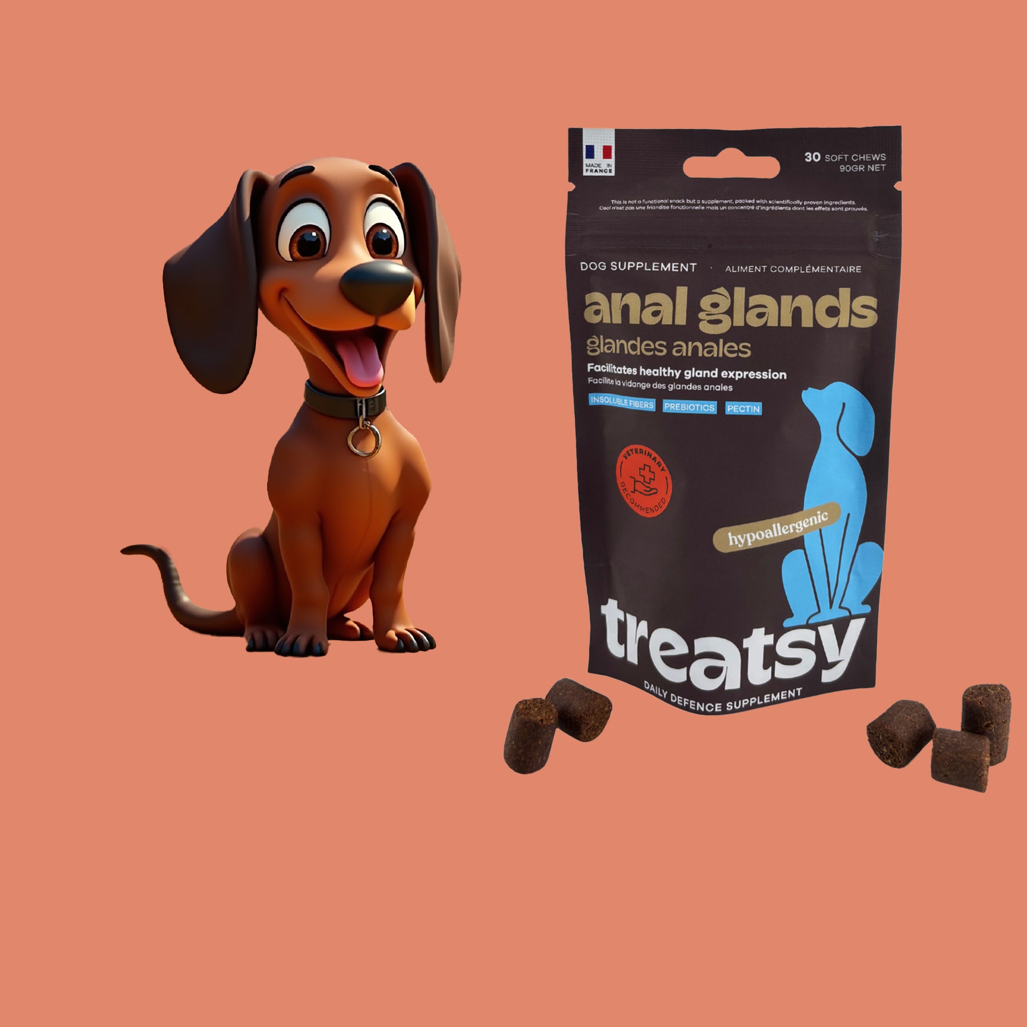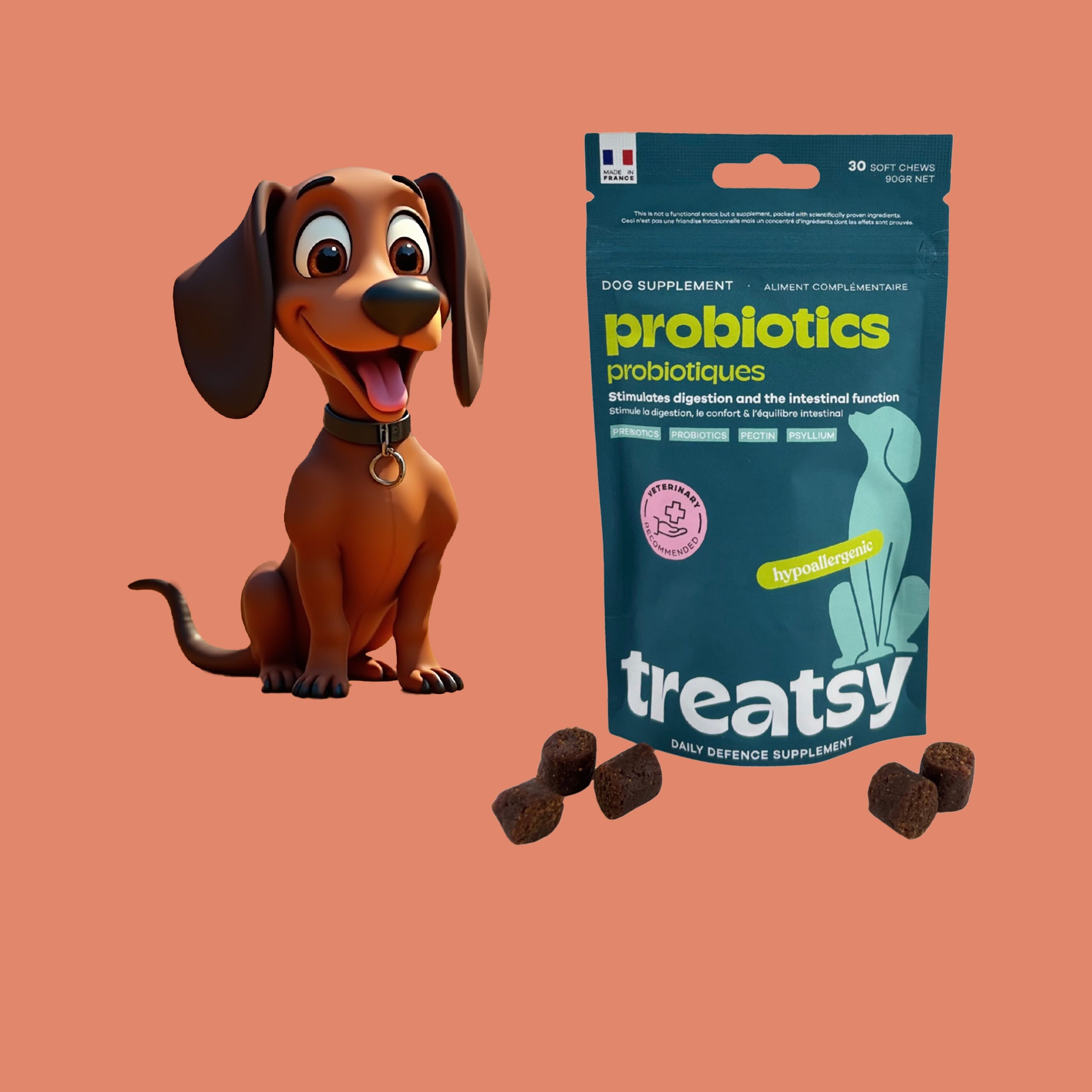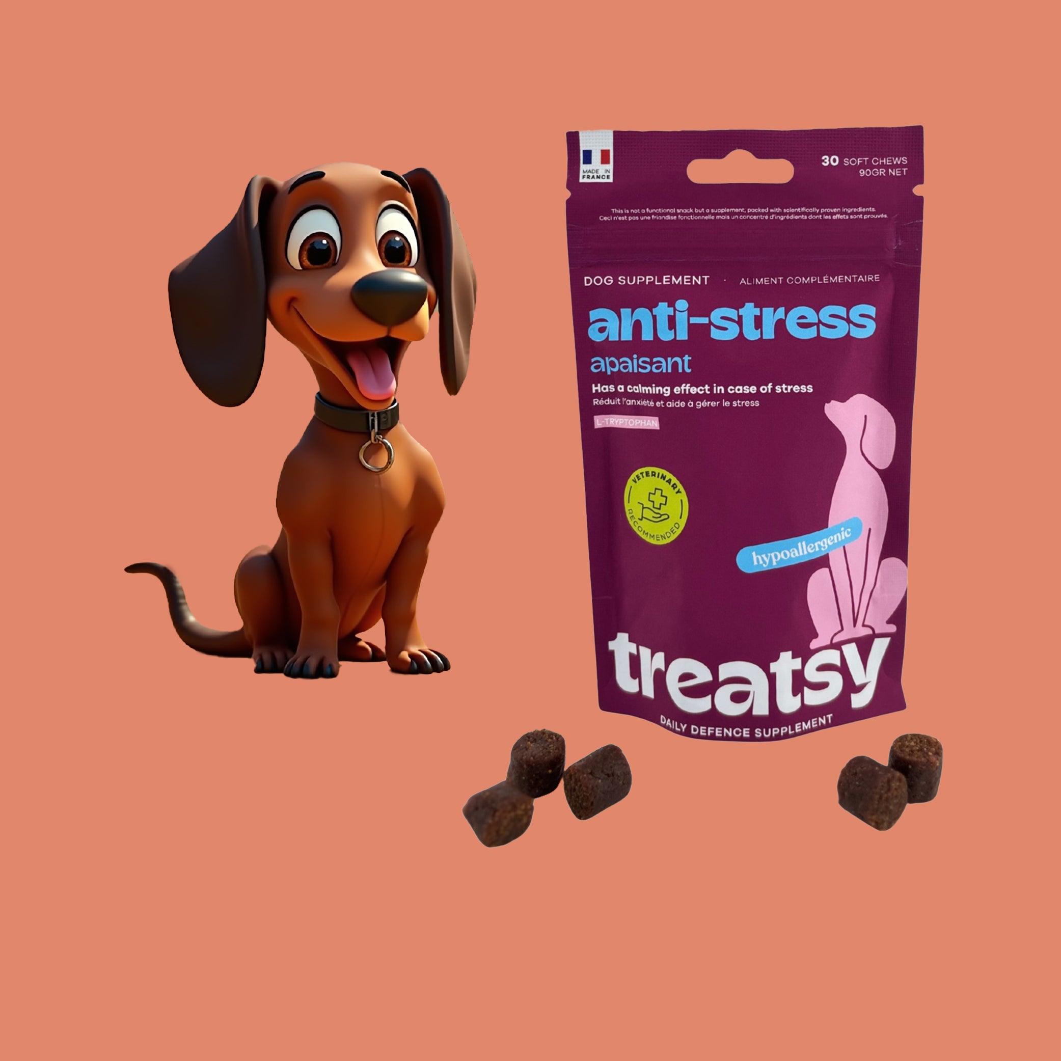Les compléments Treatsy se présentent sous forme de friandises savoureuses. Résultat :
