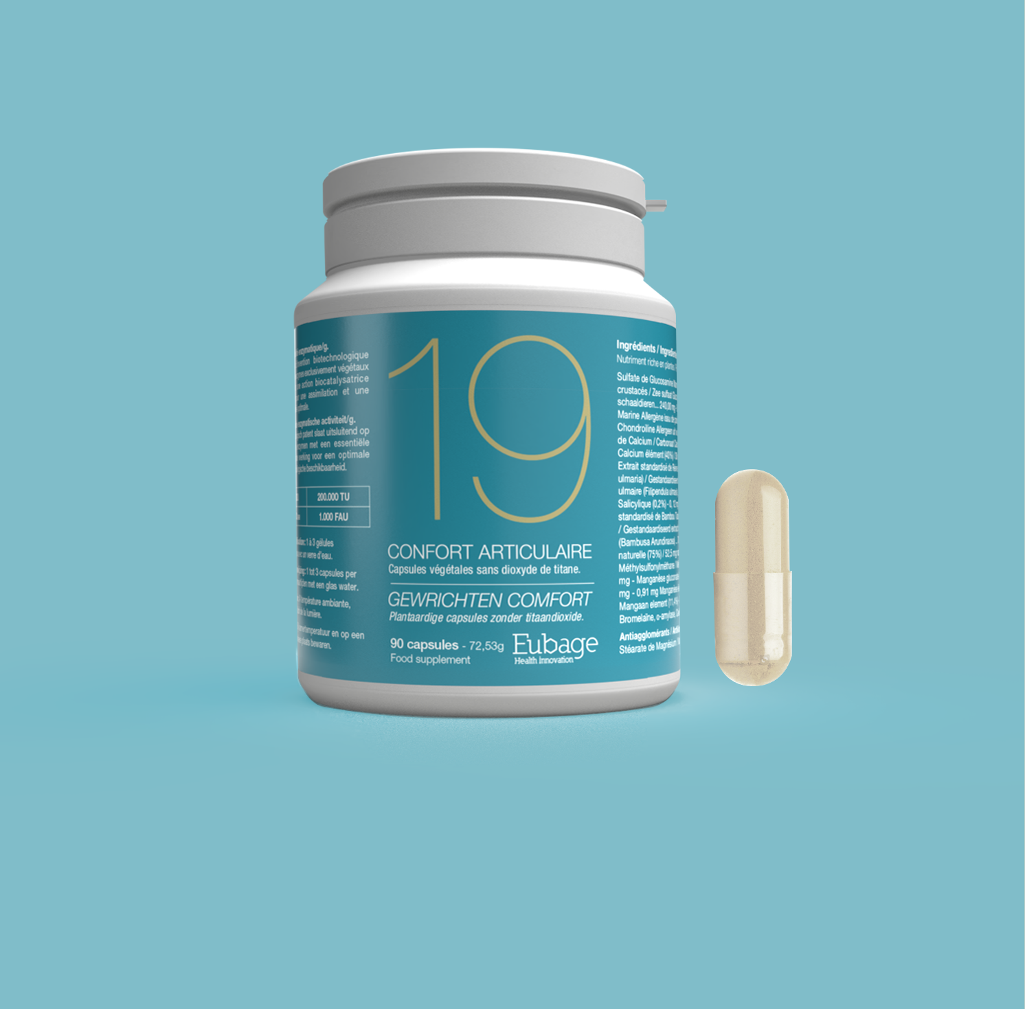 Sources produit : fiches Eubage 19 (confort articulaire, santé de l’os, enzymes végétales C89) sur CBF Medical et pharmacies en ligne. [oai_citation:1‡CBF Medical](https://cbfmedical.be/products/eubage-19-confort-articulaire?utm_source=chatgpt.com) [oai_citation:2‡Newpharma](https://www.newpharma.be/pharmacie/eubage/859630/eubage-n-19-confort-articulaire-90-capsules.html?utm_source=chatgpt.com) [oai_citation:3‡degrooteapotheek.be](https://www.degrooteapotheek.be/fr/eubage-19-confort-articulaire-caps-90?utm_source=chatgpt.com)