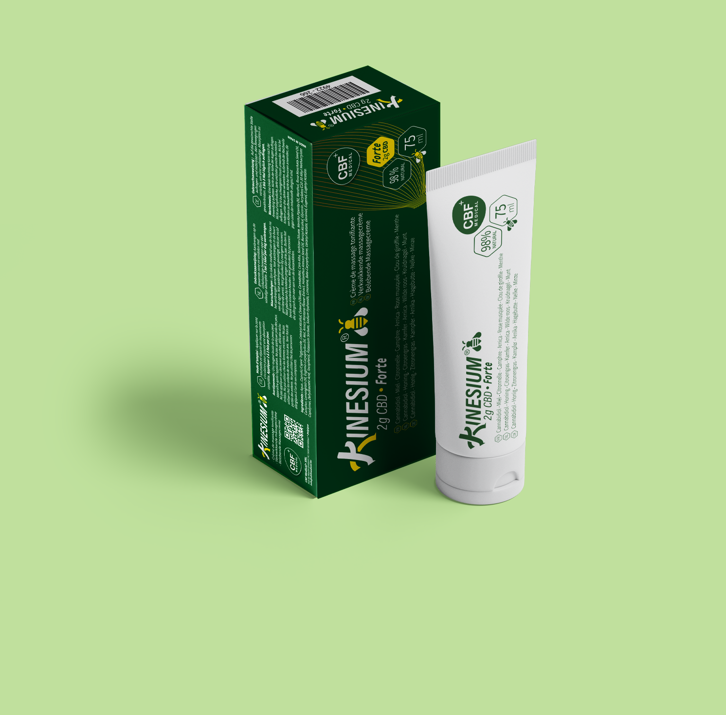 Avec sa concentration renforcée en CBD (2000 mg), le Kinésium Forte est la crème de massage la plus intense de la gamme. Elle associe miel, cannabidiol et un mélange végétal riche en plantes tonifiantes et apaisantes.