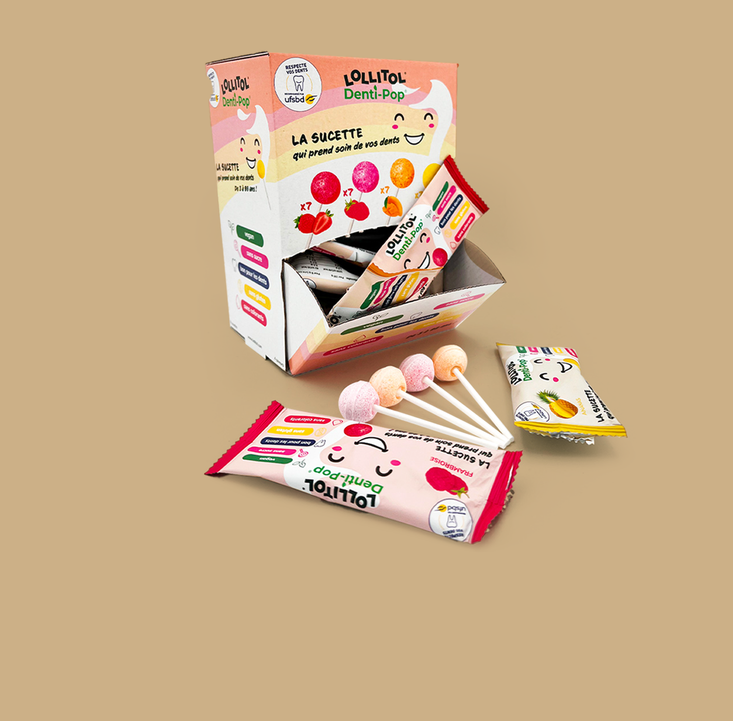 La Sucette sans sucre Lollitol pour le côté gourmand bien dosé, et les oursons Vitamine D 400 UI sans sucre pour une routine vitaminée facile : deux gestes simples pour conjuguer plaisir et équilibre au quotidien.